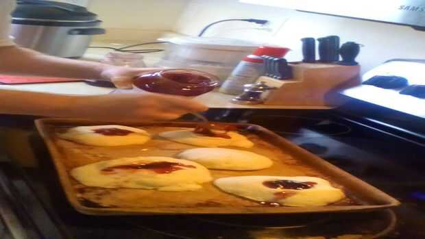 Estas gotas de mermelada casera son rápidos y fáciles de preparar como aperitivo para usted o sus niños como merienda después de la escuela.Ingredientes:65 g de mantequilla190 g de harina50 g de azúcarmitad una cucharadita de polvo para hornear1 huev
