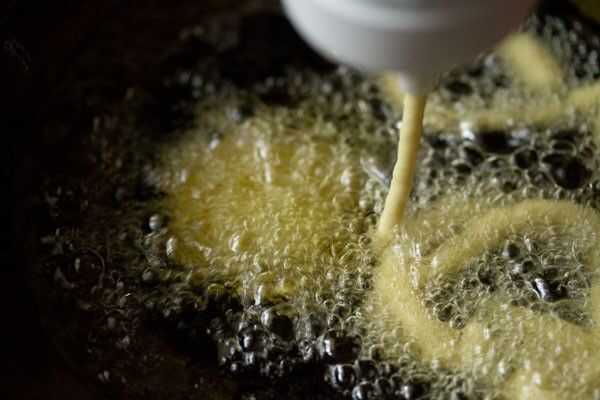 • Tubería el jalebi en el aceite caliente medio toma una poca experiencia, más tubo obtendrá la práctica más y mejor bajarse.