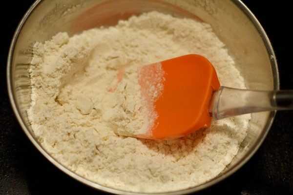 • Mezclar la harina todos, harina de maíz, bicarbonato de sodio y polvo de la cúrcuma en un bowl.Combine todos los ingredientes secos bien.