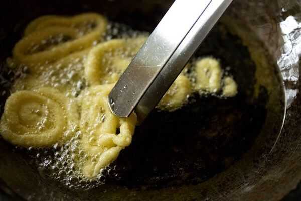 • Asegúrese de que la masa es gruesa y firme, o bien no conservan la forma del jalebi. El aceite para freír debe ser medio caliente. Si está demasiado caliente, el jalebi terminará quemado.