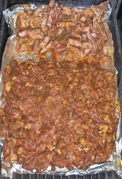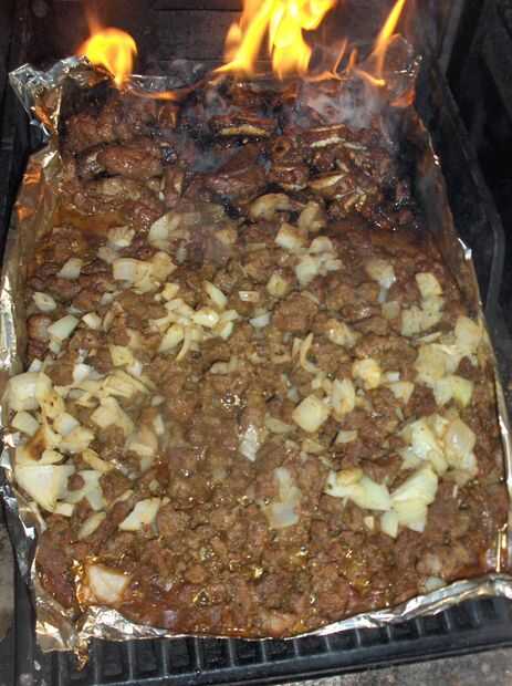 Mientras que separar la grasa y los huesos, todavía cociné les con la carne para permitir que los jugos hacer su magia. Sólo separados en la hoja de papel grande de aluminio y apilados los productos en la parte de atrás donde mis quemadores de envejecimiento levantar las llamas. Los jugos fluyeron en la carne de masa. Sobre el tiempo de la última fila de los huesos y la grasa comenzó a incendiarse comprobé la carne y estaba completamente cocido, pero no bien hecho. Era todo aún muy tierno y justo. Recuerda que la carne tiene todavía mucho más cocinar hacer, aquellos de ustedes que prefieren un filete bien hecho.