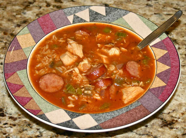 Nota: yo preparar mi jambalaya un poco diferente a lo que es tradicional. Yo prefiero cocinar mi carne por separado primero porque me gusta hacerlo bien y reservar las verduras hasta el último porque me gusta a retener un poco crujiente. Si usted está buscando autenticidad; mezclar la carne y las verduras, hervir, agregar el caldo y el arroz y cocinar a fuego lento por una hora o dos (o por lo menos hasta que el arroz está hecho.)