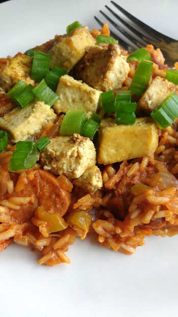 Esta receta es deliciosa, abundante, sabrosa, y una pieza jazzy de la bondad de comida casera... todo el tiempo completamente vegetariana y vegana - aprobaron! y porque es un jambalaya tradicional (sólo con sustitutos de la carne), es tienes que cocinar lo justo, tomarse su tiempo y dejar que todos esos deliciosos sabores se mezclan a la perfección absoluta. Si comes carne, no dude en añadir en la llamarada tradicional (pollo, camarones o salchicha). :)