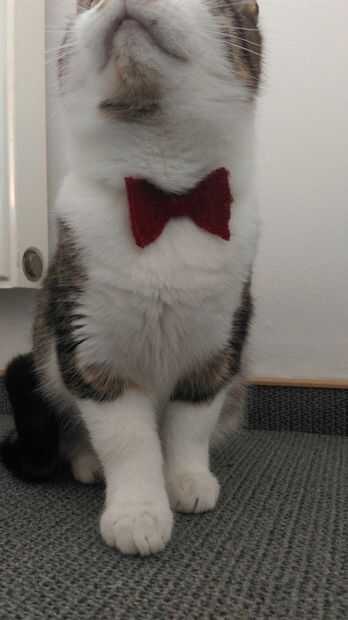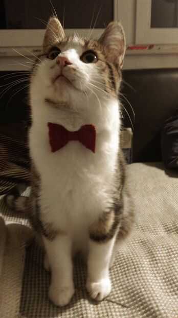 Así que este es una punto poco pajarita para su gato. Mostrar tus suegros que eres tan elegante que incluso su gato se parece a James Bond.