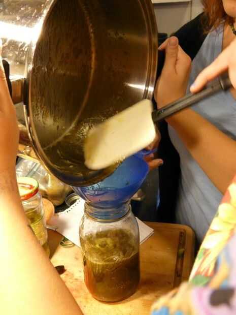 Saque un bote de lavavajillas y una tapa de la agua caliente y el lugar del embudo en la boca de la jarra. Luego coge un amigo para sostener la olla mientras se vierte y raspe la mermelada en el frasco. A continuación añadir la tapa y sellar la jarra.