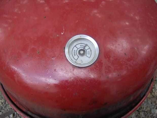 tengo una foto de la parte superior de mi ahumador. No hay tempperatures, sólo un cálido, ideal y calientes las divisiones. De la experiencia (y poniendo mi termómetro de lectura instantánea en el lado del ahumador) sé que esta es que es 225. Estoy buscando un acabado jamón Picnic en 180 grados. La siguiente fotografía es del jamón después de 2 horas del humo de roble.