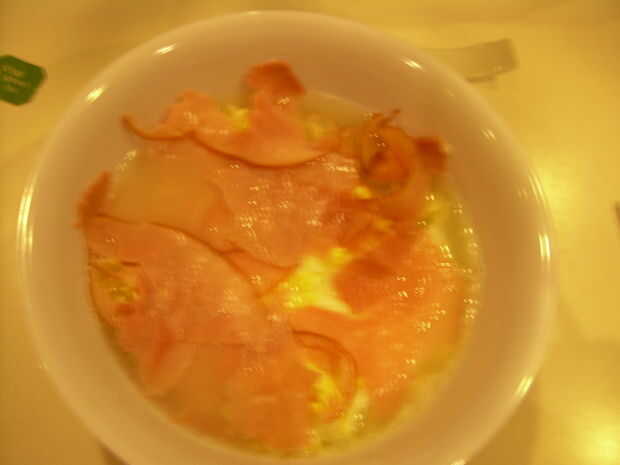 Toma un sorbo de té, la mano en esa bolsa de jamón y sacar unas lonchas. Ahora rasgar en pedazos individuales pequeños y soltarlos en el ramen. Añadir más o menos jamón al gusto. Yo mismo soy un Meatatarian (es una opción de vida, sé), así que tuve un poco de jamón en mi ramen.