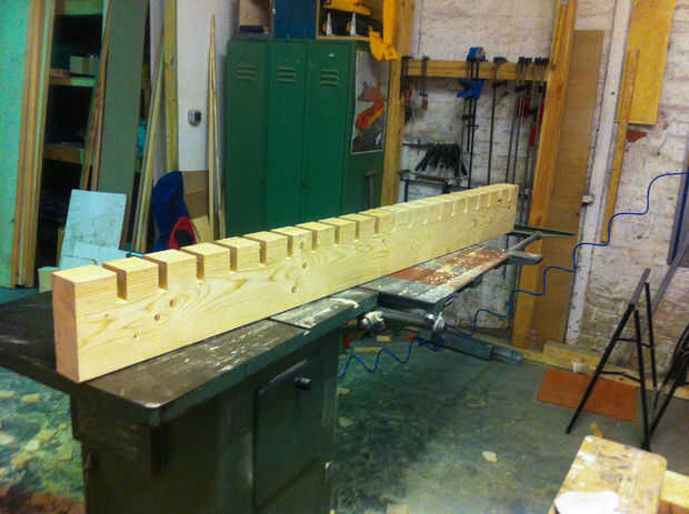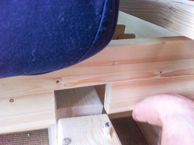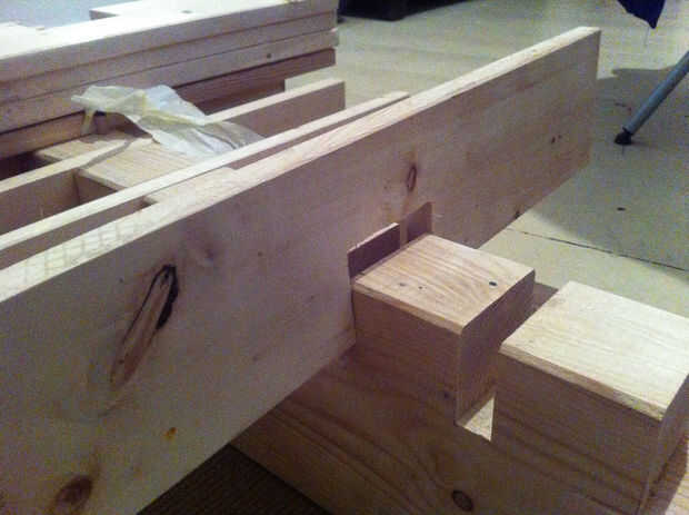 Recuerde que la cama es extraible. Así que tenemos que cortar agujeros ancho 20 x 2cm en la viga. Tampoco podría hacerlo con una fresa o con una sierra de buzz. Lo hice con la Sierra de buzz y un