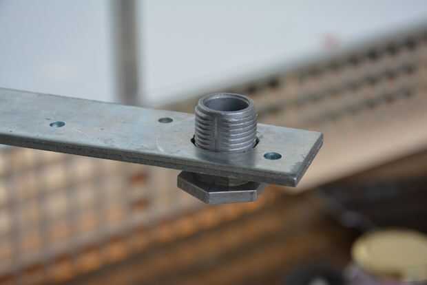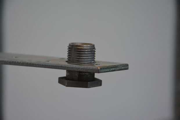 -Un agujero debe perforar o molido con un diámetro que se adapta a inserto roscado (2.1) de la pistola de silicona (imagen). El agujero debe taladrarse en que manera que inserte el hilo puede estar centrado sobre el armazón (peek el paso siguiente).
