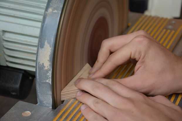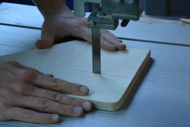 El primer paso para hacer esta manija está aserrando la madera capa superior, capa media y 4 triángulos.