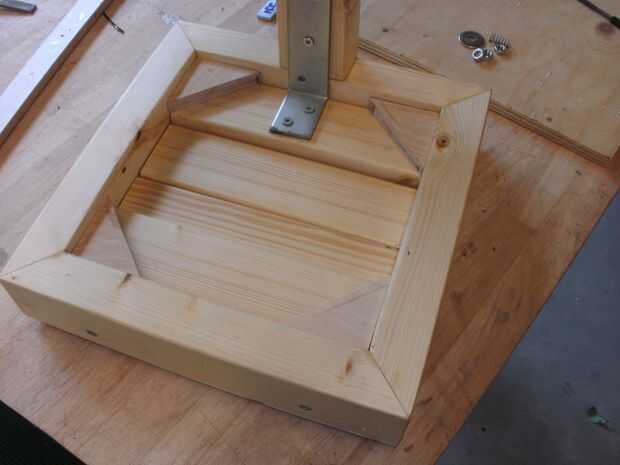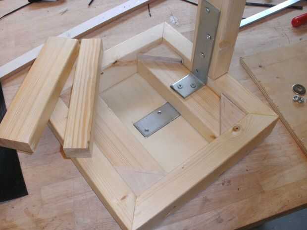 Para sostener el tarro-titulares bien y lo suficientemente alto, los 4 triángulos con las restants de la madera se debe pegar en las esquinas interiores del marco. También viga (1.3) y (1.4) desde los primeros pasos pueden colocarse definitivamente en el marco.