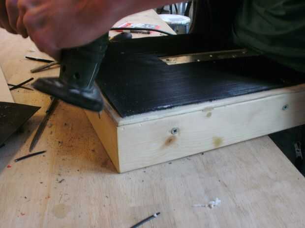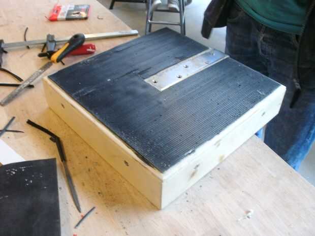 Primero, la forma de la placa inferior de la ayuda es medido y cortado hacia fuera (de esa manera que la textura es paralela a la viga vertical). Esta hoja luego puede ser pegado con cola de madera y construcción de PU. Cuando el pegamento ha reaccionado y está seco, la hoja tiene algunos acabado lijado y corte a la suciedad.