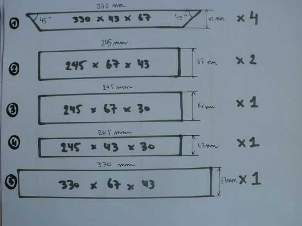 Los soportes de Jar son en nuestros caso dos piezas hechas de la misma viga de madera como las partes anteriores. Tienen una altura menor que los refuerzos, porque todos los frascos deben encajar en la ayuda (los pequeños frascos y tarros grandes). Si nos fijamos en nuestro instructivo, será claro que la altura de este apoyo tendrá una influencia en la altura de la jarra (que debe ser lo suficientemente alta como para una buena comodidad). Estas dos partes (1.3 y 1.4) tienen dimensiones (1.3) 245 x 67 x 30 mm y (1.4) 245 x 43 x 30 mm.
