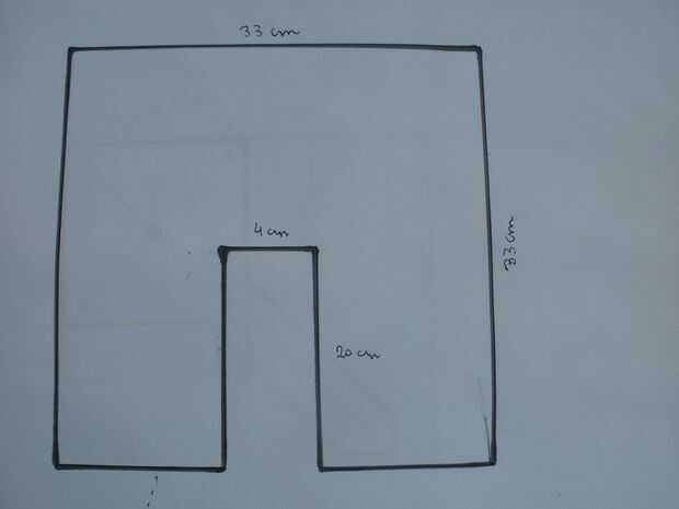 La placa tiene un recorte (en el que encajará el perfil ángulo 1.8 ): 4 cm x 20 cm (boceto)