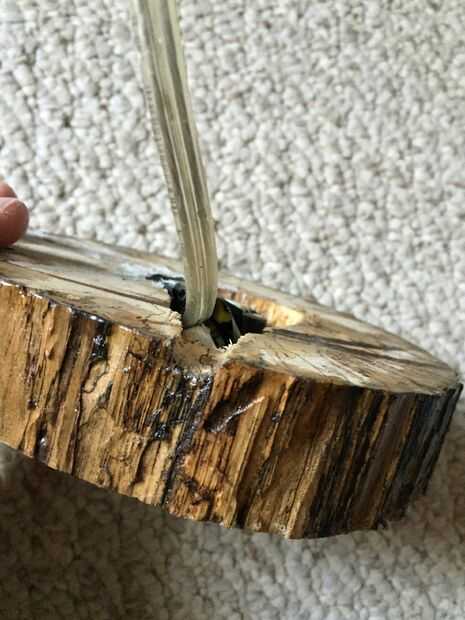 Corte unas pulgadas del extremo de su registro con el fin de conseguir más allá de cualquier superficie grietas o decoloración. Mi registro llegó a tener algunas líneas de insectos realmente únicas y agujeros que realmente añaden carácter a la madera.