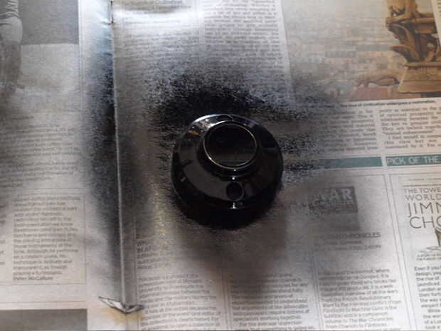 Acabado y pintura de la base y el portalámparas. Yo no iba para una mirada limpia, por lo que solo se rocía negro brillante. Las tuercas pero vaya gente aquí, realmente, todo es posible.