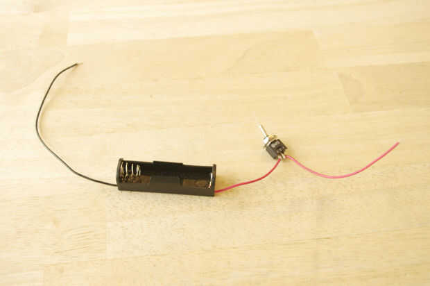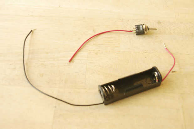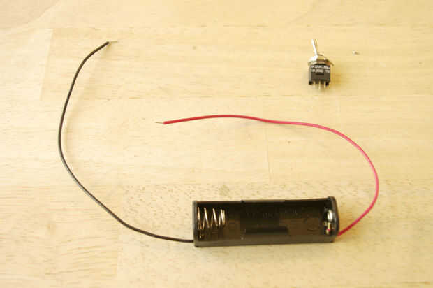 Cortar el cable rojo del portapilas en medio. La soldadura de las piezas cortadas al terminal del centro del interruptor y el cable rojo conectado todavía al titular de la batería al terminal externa del interruptor.