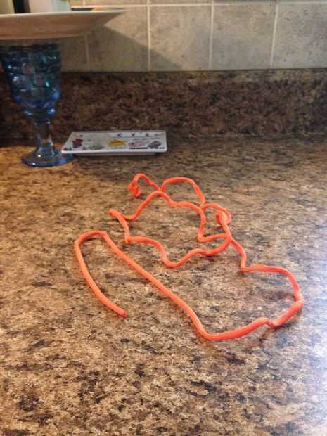 Buscar alguna cadena. Puede ser hilo, molle, etc.. Como es una cuerda, debería funcionar.