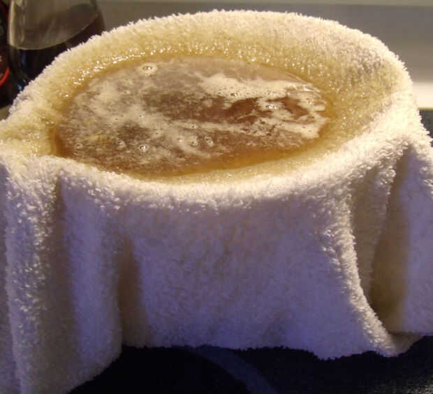 Voy de la estufa al filtro. ¿Qué filtrar? No, no tienes que comprar nada. Tuve una servilleta de lino que posiblemente provenía de un buen restaurante. No, no robarlo. El chico que trajeron uniformes y trapos de tienda para trabajar también entrega servilletas para restaurantes. También se venden bolsas de unos arrancó hace un par de dólares. Son grandes para pelusa pasando necesidades y también para el filtrado de jarabe. Ahora tengo una toalla de plato de tela vieja. Nunca va en la ropa. No quieres ropa detergente en el jarabe acaba de pasar todo eso toma tiempo. Yo Lave en agua caliente y escúrralo luego hervir en una olla durante unos minutos. He utilizado éste para dos temporadas. Me estiran alrededor una ensaladera de pyrex y vierta el jarabe caliente a través de él. Tarda varios minutos pero todos los escombros flotantes en su almíbar habrá desaparecido. Uso de Pyrex o cualquier otra cosa que no explotan como poner almíbar caliente en él.