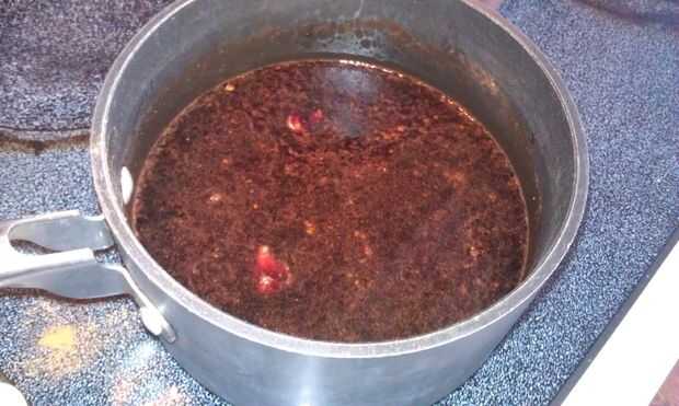 Continuar a fuego lento durante 30 minutos, revolviendo regularmente, hasta que el líquido a la mitad.