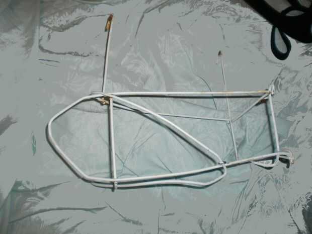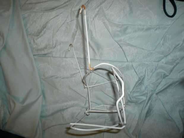 En el primer cuadro, indica la barra transversal, que es donde descansará la parte delantera del taladro en. Doblar cada extremo en forma de gancho y había encajado en los dos lados. Esto también hizo que toda la estructura mucho más estable.