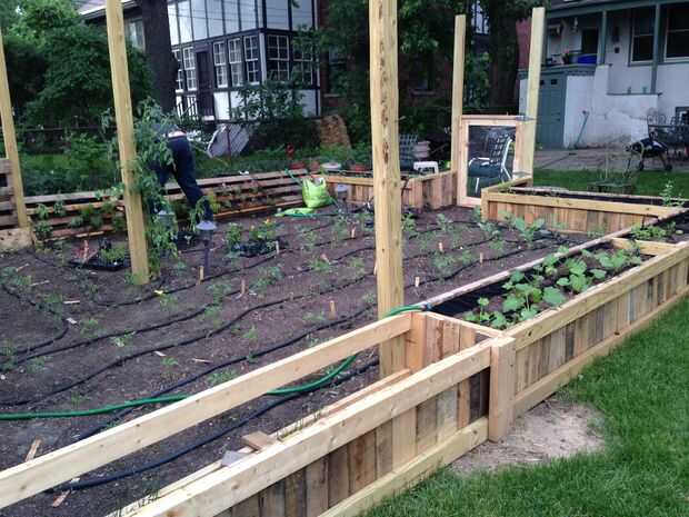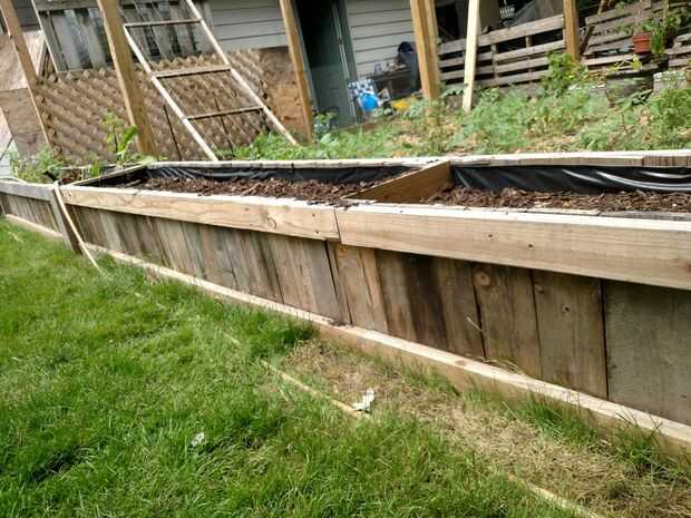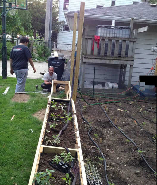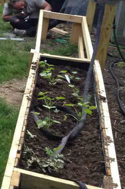 Entonces llenamos con tierra compostada con nuestro cañón handy dandy rueda