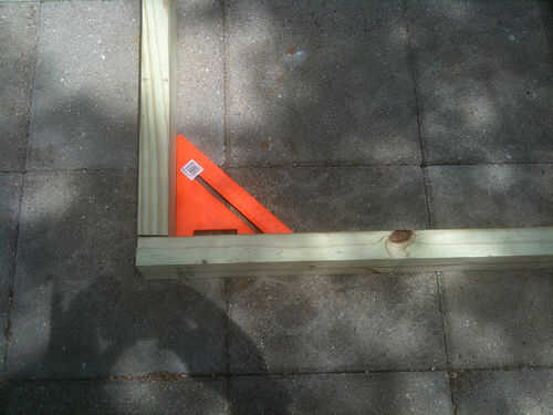 Si diferentes tamaños del corte (o incluso a Compruebe el diseño) te recomiendo colocar la 2 x 4 en la parte superior la madera cortada para que tengan las juntas alineadas correctamente. En mi banco, el 28" es en los lados y 33" están en el interior de los 28".