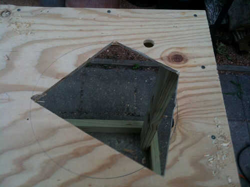 A continuación, perfore un orificio de 1" donde quiera el grifo que se encuentra. Elegir una esquina para maximizar el espacio de la mesa de trabajo. A continuación, corte un agujero para su ' cuenca '.