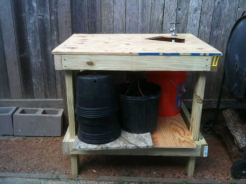 Después de decidir en dónde colocar su banco, agregar tu 'Y' splitter a su grifo de manguera y conecte la manguera de jardín a un extremo de la "y" y su nuevo fregadero.
