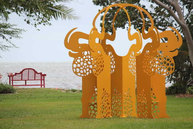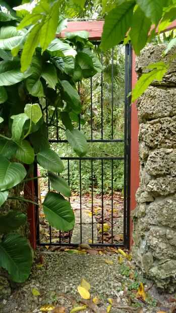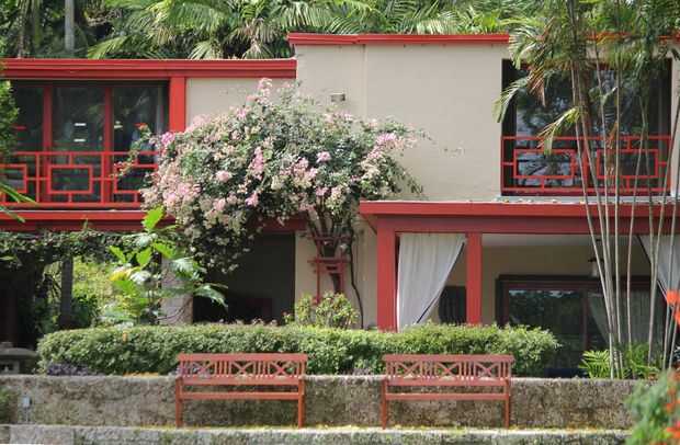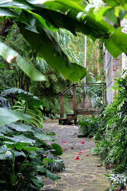 Jardín Botánico a menudo tienen estructuras que pueden ser tan atractivas como la flora que mostrar. Éstos incluyen esculturas, fuentes, edificios, invernaderos y en el caso de jardines de Kampong (y muchos otros) a veces las casas.