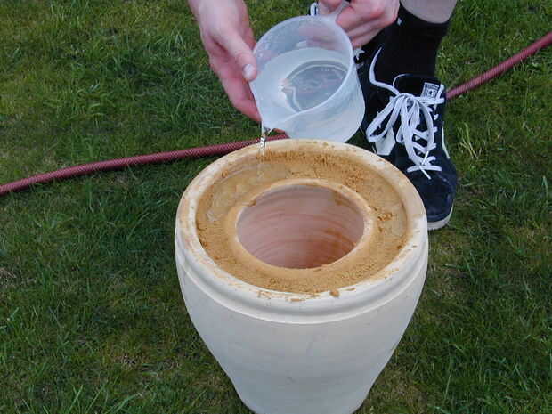 La olla de barro es porosa, por lo que absorbe la humedad en el recipiente externo.