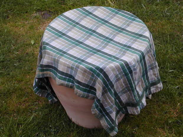 Para cubrir, utilice una toalla vieja y húmeda esto así. Podría poner un extremo de la toalla en un depósito (un tazón de agua) y seguirá aguas arriba en la parte superior del fieltro y se evaporan causando más de una gota de la temperatura.