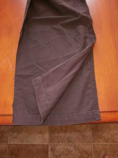 Recae en el bolsillo de la derecha contra el lado equivocado de los pantalones, alineando la parte inferior de la bolsa con la parte inferior de la pierna de piratas y el borde superior (recién cosido) con la encima de-la-rodilla-marca.