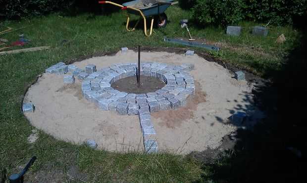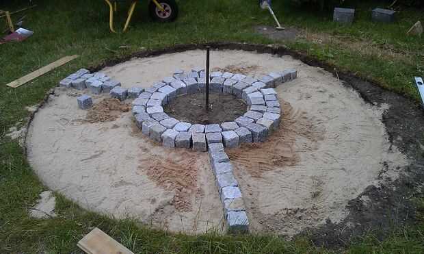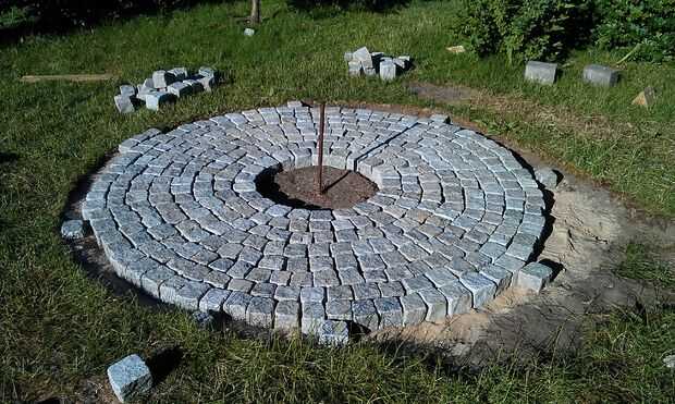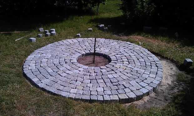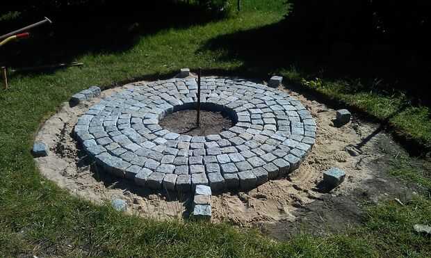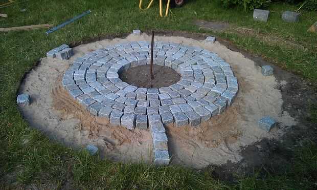 Te sugiero que empieces desde dentro y por fuera. Asegúrese de no añadir arena entre los adoquines todavía.