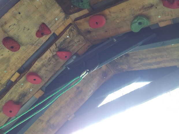 Recomiendo que subir esta parte de la estructura de hacerse con arnés de cuerda y un socio en el "aseguramiento" o cuerda de freno.