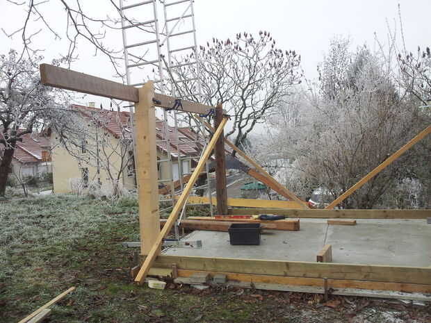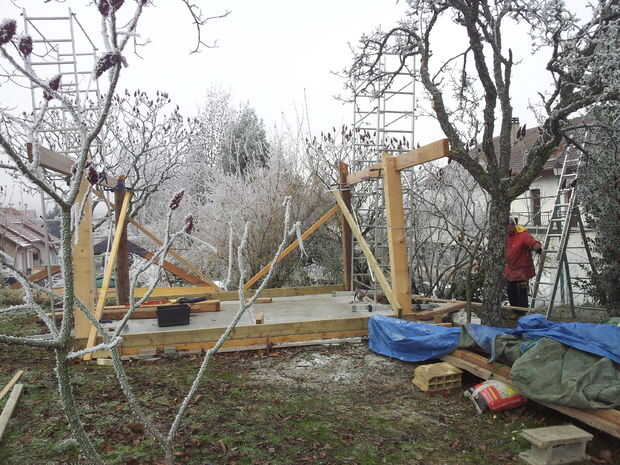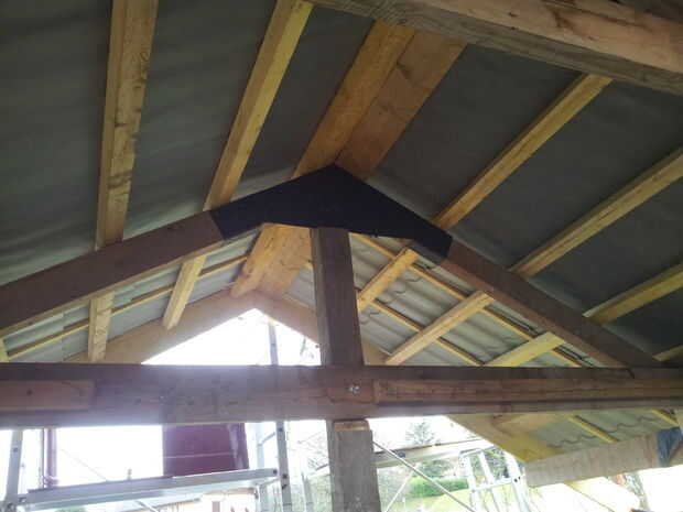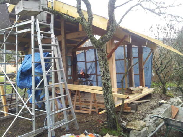 Los montantes eran sobre todo vigas recuperadas y travesías así. A veces difícil porque eran muy viejo y deformado, las travesías eran de 1940 construcción de la casa que me recuperé de la rehabilitación.