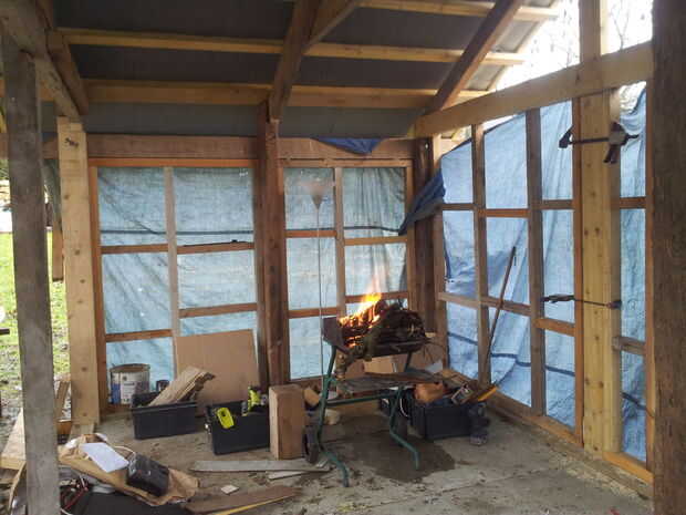 La madera de 4 x 2 techo era nuevo y recto. Las paredes fueron enmarcadas con 4x2s quedaban en stock con un espacio para paneles de aislamiento de polietileno de 60cm.