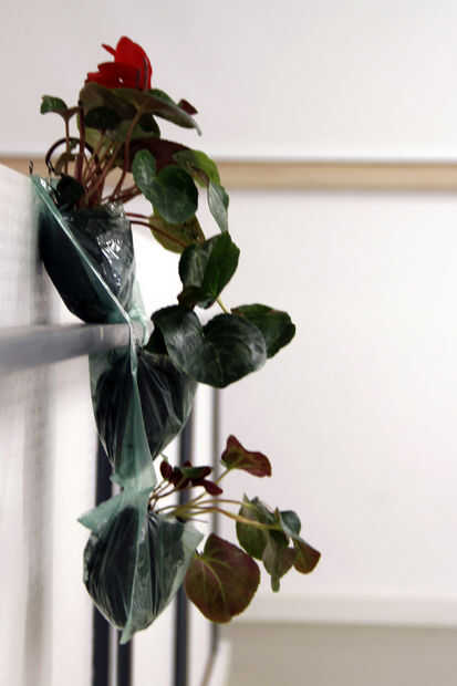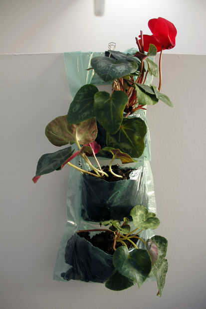 aquí es una gran manera de ataviar encima de su corbata... convertirlo en un jardín vertical!Lo que necesitarás...TijerasHilo, agujaMacetasBolsas de plásticoHanger(s) metalMuestras de fieltroUniónPedazos de instinto (botones, alfileres, broches, geme