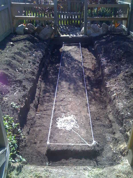 Yo había cavado abajo extra 3 pulgadas todo el camino alrededor de la cuerda para compensar la altura.