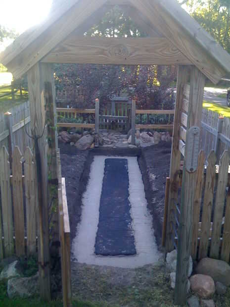 Como usted puede decir probablemente que el cavado hacia fuera de la zona es un poco más ancha que cuál es necesitada, que son aceptable, se conducir estacas de madera en el suelo fuera de los lazos de la RR para ayudar a mantener de la mudanza lejos de