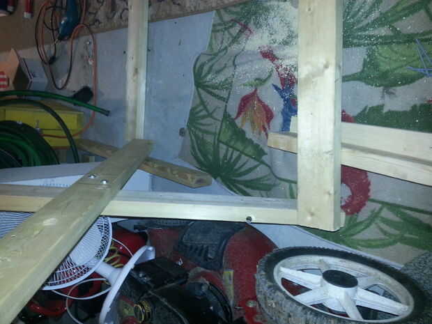El marco es bastante recto que hacia adelante para construir se necesita 6 piezas de 2 x 4 de cuatro pies. La forma más fácil es obtener 3-8 pies y cortarlas por la mitad. Usé 4 pernos total para hacer la x 2 tornillos en cada uno. El tamaño de los pernos son 3,5 pulgadas 1/4 de diámetro. Asegúrese de obtener arandelas de 1/4 y tuercas de apriete. Usé llaves para asegurarse de que estaban apretados. Usted necesita para asegurarse de que centro de la x Lo hice por los 2/4 de medida ancho de los cuatro pies es de 48 pulgadas. en la mitad es de 24. la anchura era 3 pulgadas así que 1,5 pulgadas de cada mitad mide en 22,5 pulgadas de cada extremo de la 2 x 4 y dibujó una línea a través de dejar el espacio para la otra tabla mentir. Para ello en cuatro pies 2x4s y alinee las líneas. Me pre perforados los agujeros con 1/4 pulgadas broca entonces agregó las arandelas de los pernos y tuercas. Después de tener tanto el x construida tome último a pie de página y el uso de 3 pulgadas tornillos para fijarlos. Os adjunto los tres pulgadas arriba de la base.