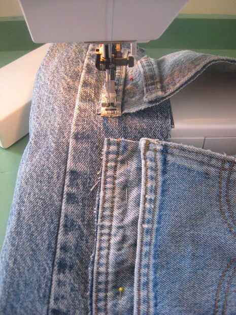 Coser todas las piezas en su lugar. Considere el uso de hilo grueso o una puntada de zig zag para asegurarse de que las costuras son robustos. Asegúrese de que todo se cuelga en el cubo y luego coser el interior de la entrepierna a sí mismo, para que la tira de bolsillos ahora es un bucle.