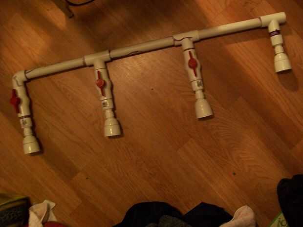 Por lo tanto, puede seguir simplemente la imagen. No estoy tan seguro de cómo explicar en texto por lo que no. Me doy cuenta ahora que mi foto de la vista de un subconjunto de rociador faltaba la válvula. Puesto que el pegamento se seca más o menos por ahora, imaginando con la incorporación de la válvula se deja como ejercicio para el estudiante terminar. La aplicación de limpiador de PVC y cemento está fuera del alcance de este ' ible así que tal vez voy a hacer uno algún día. Además, después de este paso i estoy bastante niebla encabezado. Este ventilador de caja me no está haciendo mucho bien en cuanto al control de humo.