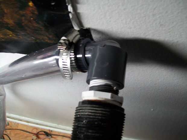 Todos los tubos están sujetos a las abrazaderas de manguera. uno entra en el sistema de pulverización de la bomba, uno viene desde el desbordamiento de mamparo y lleva en el depósito. La manguera de descarga sólo necesita que se extiende desde la toma de corriente de intercambio en la pecera.