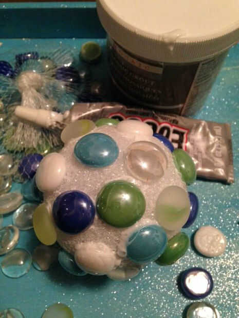 Empezar por poner un pequeño toque de pegamento E6000 en su bola de espuma de poliestireno. No tienes que atrasado esta menos es más.