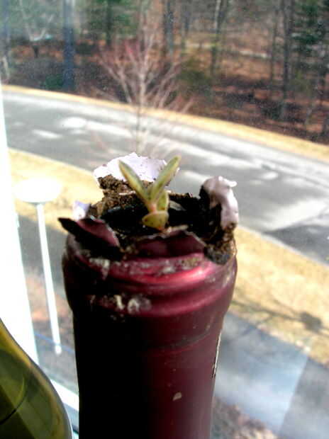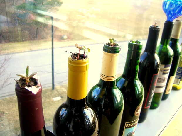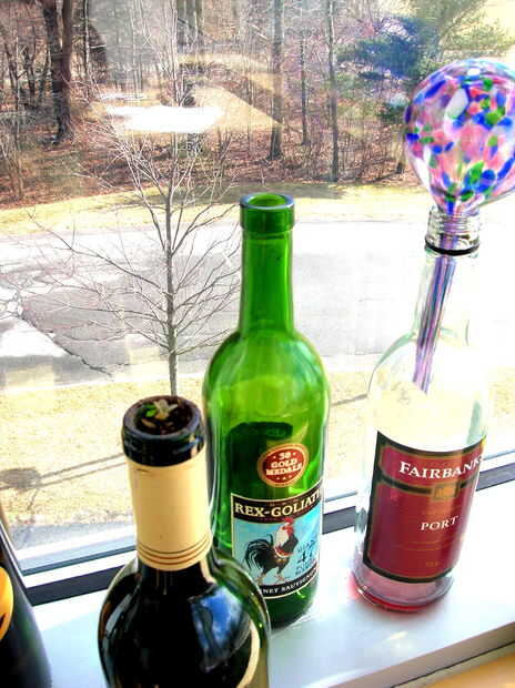 De repente, me golpeó! Botellas de vino podrían ser macetas, para así resolver todos mis problemas! Y se ve genial en mi ventana que algunas botellas llenas de agua, algunos vacíos y algunos llenos de plantas.