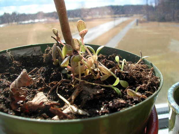 En la foto están las plántulas y la planta del padre que he usado. No tengo ni idea de qué planta es, pero no muere fácilmente.