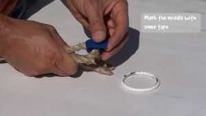 2. tomar una pieza, doblar en 2 y marcar el centro con alguna cinta o cadena.