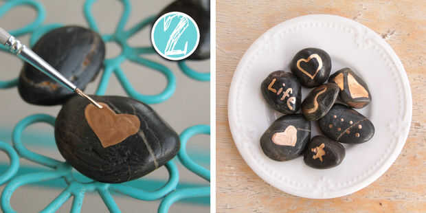 Pintar sobre tus piedras! Simple como eso. Ahora cuando el sol brilla abajo en sus plantas estas encantadoras pequeñas joyas atrás reflejan la luz y un resplandor caliente del molde.