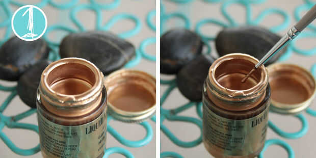 Con un cepillo que no te importa posiblemente ser arruinado, echar la hoja de oro líquida.